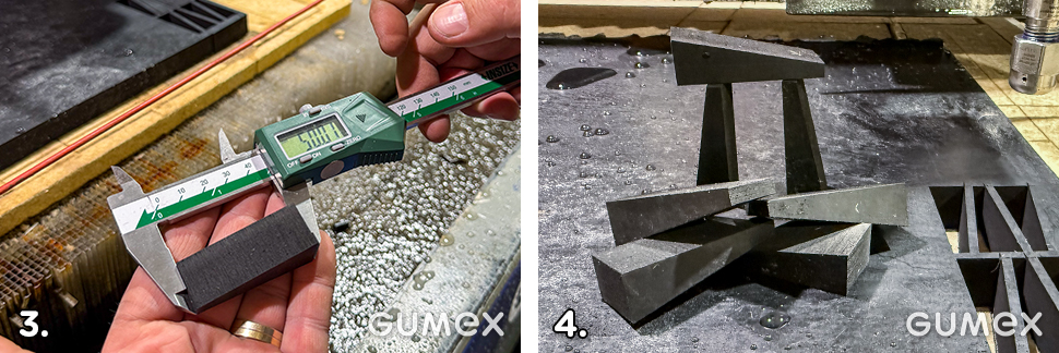 3. kontrola výsledného produktu, rozměrů a řezu 4. hotový výrobek – klín z pryže BLACK STAR pro stavebnictví